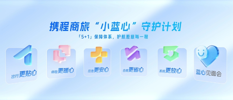 此外,携程商旅还发布了以“5+1”保障体系为核心的“小蓝心”守护计划,覆盖行程、应急、体验、合规与系统五大场景,并设立千万级保障基金,用于紧急行程处理、退款保障与体验补偿。