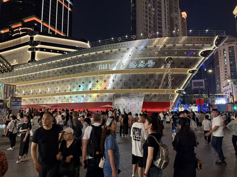 今年6月25日,全球最大的国际品牌集团路威酩轩(LVMH)旗下路易威登(LV)品牌在上海揭幕全新概念地标“路易号”。这艘独一无二的“巨轮”,迅速引爆社交媒体,成为申城最热打卡点,并激发全城商业活力。统计数据显示,4个月来,“路易号”所在的兴业太古汇日均客流高达8至10万人次,南京西路商圈日均客流超50万人次,周边重点商场客流同比增长超50%,销售额普遍实现翻倍增长。